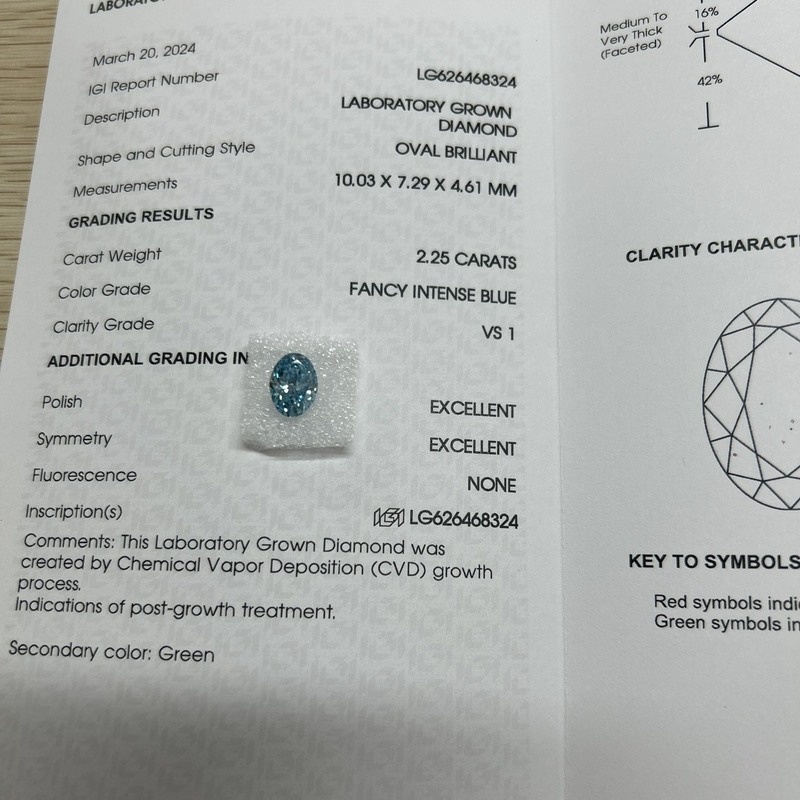 2.25ct لابراتوار رشد الماس بریده ی بیضوی CVD فانتزی شدید آبی VS1 2EX N IGI