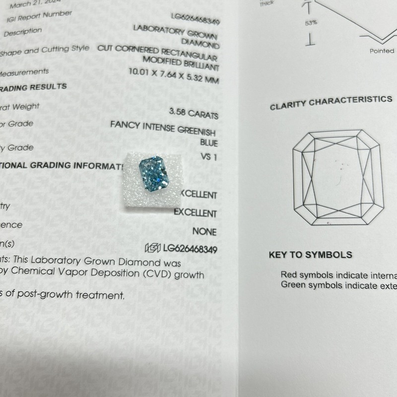 3.58ct لابراتوار رشد الماس شعله دار برش CVD فانتزی شدید آبی سبز VS1 2EX N IGI ♪ LG626468349